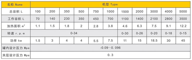 | 工作容積 | 70-3500L | 罐內設計壓力 | -0.09-0.096MPa |