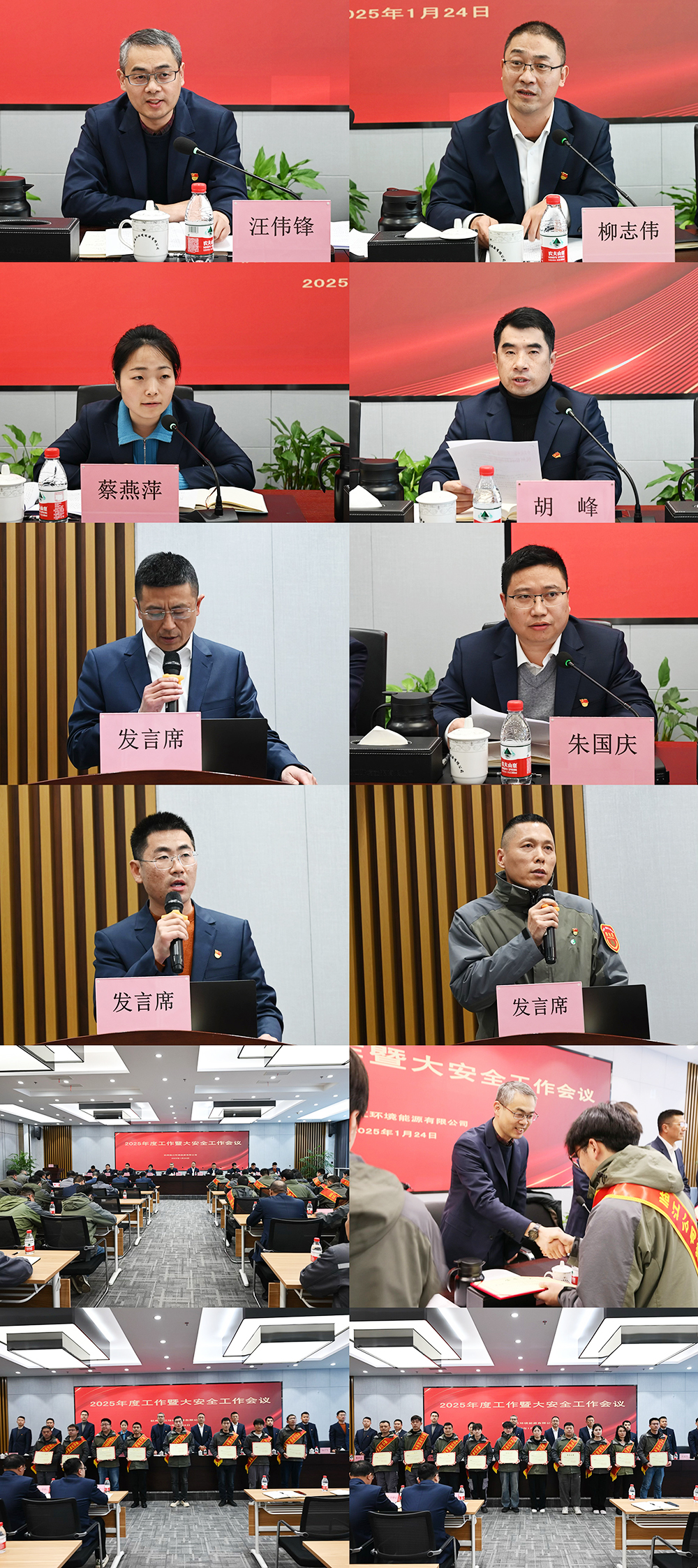 胡峰副總經理宣讀臨江公司2024年度先進集體和先進個人的決定并進行表彰。能源運行中心、三固運行中心、應急管理部負責人作表態發言,朱國慶副總經理作年度大安全工作報告。